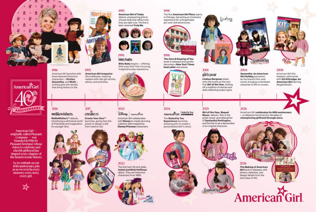 American Girl’s 40-year history features new brands, collabs, and locations. | Source: Mattel