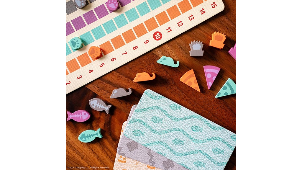 For the purr-fect game night, get your paws on Cats Knocking Things Off Ledges. In this silly stacking game, players take turns building a wobbly tower, carefully balancing kitties, and batting cat toys over the side with sticks. The farther the toys tumble, the more points you’ll win — but watch out! If you accidentally knock the tower over, you’ll lose the whole kitten-kaboodle. With a combination of creativity, strategic thinking, and fine motor skills, this meow-vellous game is fierce feline fun for kids ages 10 and up.