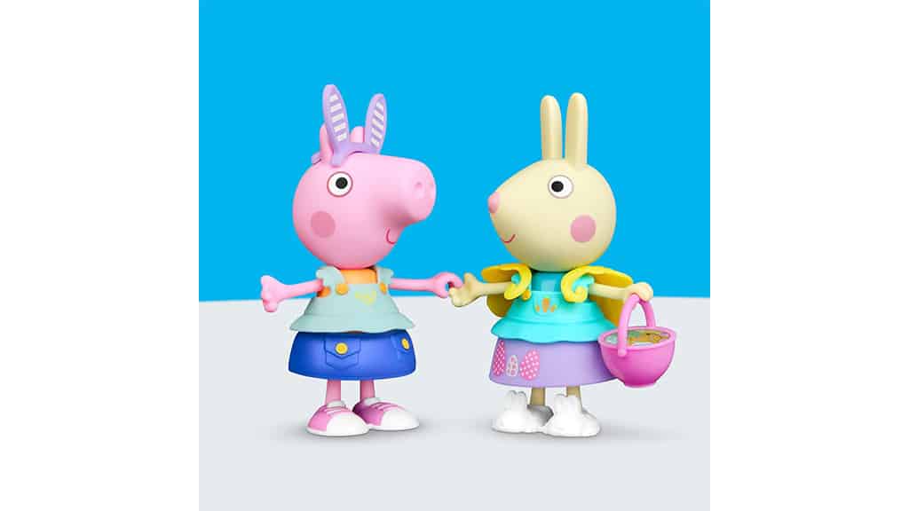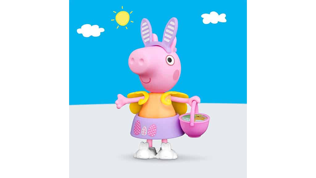 The Peppa Pig Springtime Dress-Up Figure from Hasbro is ready for spring and playtime activities. With this 6-inch figure, kids can mix and match snap-on fashion accessories to create the perfect outfit for Peppa Pig. The pack includes six springtime pieces, including bunny ears, an egg-decorated skirt, a top with floral designs, bunny slippers, and a chick capelet. Kids can complete their outfits with a pink basket featuring Peppa’s teddy bear and colorful Easter eggs.