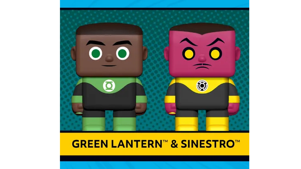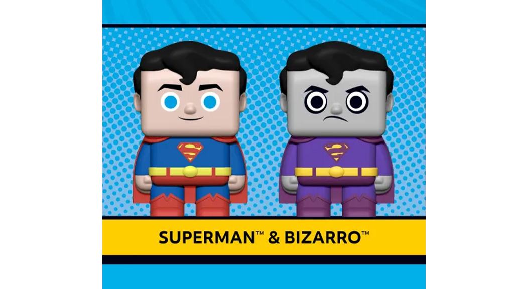 Fight hunger and boredom by collecting 12 iconic DC toys. With every order, kids will discover famous heroes like Batman, Superman, Wonder Woman, The Flash, Green Lantern, and Supergirl. Danger also lurks in this deal — kids can obtain villains like Zur-En-Arrh, Bizarro, Artemis, Sinestro, Reverse Flash, and Bizarro Supergirl.